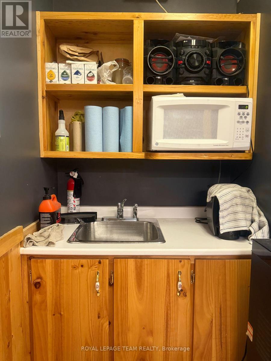 Opportunity to purchase a single unit flex-space commercial condominium that can serve as retail, office and/or light industrial space. This unit measures approximately 810 square feet and is currently open concept space with one washroom and one kitchenette. With fantastic floor to ceiling windows fronting the main entrance, this unit also includes a newly installed small electric garage door (approximately 8' x 4') for shipping and receiving at rear. Parking onsite on a first come for serve basis. Certain uses are prohibited as per condominium regulations such service and repair of all motor vehicles. Please contact the listing agent to schedule a viewing. (id:58075)