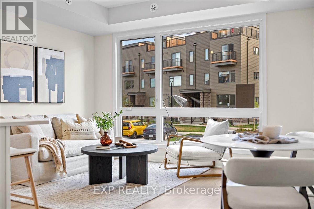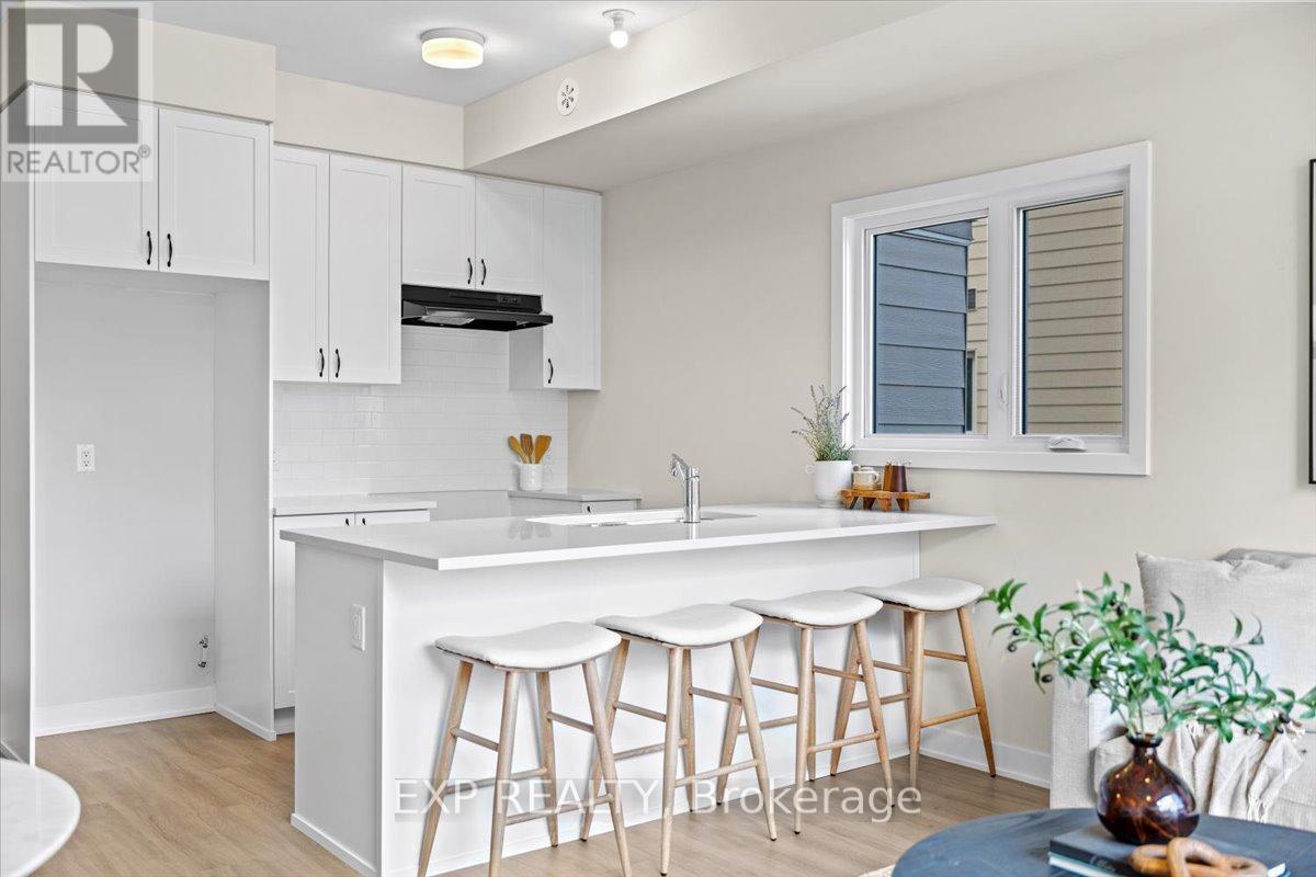 Be the first to live in this brand new 2Bed/2Bath END UNIT stacked home in Wateridge's master planned community, steps from the Ottawa River and a quick drive to downtown. This community is filled with parks, trails and amazing amenities. The Britannia END unit has a bright, sun filled open floor plan with lots of windows and extra light, featuring 9' ceilings on both levels. The main level features laminate flooring throughout and an upgraded floor plan which includes a powder room. The kitchen boasts modern, white cabinets, quartz countertops, backsplash and a breakfast bar overlooking the living and dining room. Lower level with two spacious bedrooms, plenty of closet space. Full bath features quartz countertops and undermount sinks. One outdoor parking space is included. Floor plans and colour package attached. (id:58075)